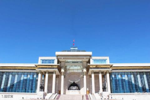 Introducción al Palacio Nacional: El Palacio Nacional en el norte es la sede del presidente, el gobierno y el parlamento de Mongolia, y tiene una majestuosa estatua sentada de Genghis Khan.