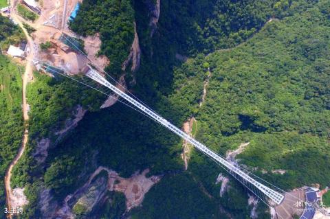 Introducción al tramo principal: El tramo principal del puente es de 430 metros una vez que cruza el cañón, el tablero del puente tiene 375 metros de largo y 6 metros de ancho. La altura relativa del tablero del puente desde el fondo del valle es. unos 300 metros.