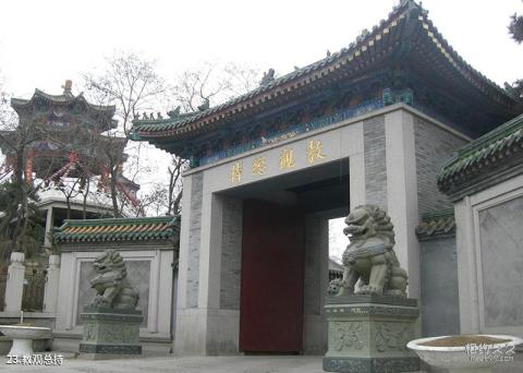 Introducción al Titular General del Templo de Enseñanza: El Templo Zhanshan tiene dos entradas, una es la puerta de la montaña y la otra es la "Puerta General del Templo de Enseñanza". La puerta está hecha de ladrillos azules, con un león de piedra a cada lado de la puerta, lo que evoca la sencillez y solemnidad del templo y es imponente.