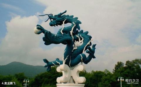 Introducción al Dragón Negro Elevándose: Caminando por el camino pavimentado con tablas prefabricadas de cemento, verá una escultura única e interesante del "Dragón Negro Elevándose hacia el cielo".
