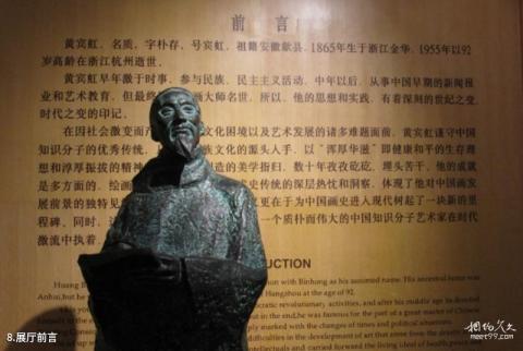 Introducción al prefacio de la sala de exposiciones: En la sala de exposiciones, también hay una estatua de bronce del Sr. Huang Binhong, con un prefacio en chino e inglés detrás.