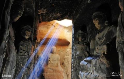 Introducción al templo Xiangguo: La mayoría de las grutas detrás del templo Xiangguo fueron excavadas en la dinastía Zhou del Norte. La mayoría de las estatuas en las cuevas 51, 67 y 70 tienen entre 6 y 7 metros de altura. Los nichos son un Buda y dos Bodhisattvas, con tallas exquisitas.