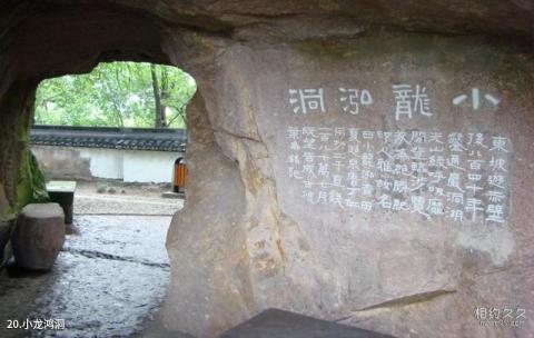 Introduction to Xiaolonghong Cave: Xiaolonghong Cave was manually excavated in July 1922 and named after Ding Jing, the founder of the "Zhejiang School" seal carving. On the cave are the four-character official script "Xiaolonghong Cave" of different sizes carved on the cliff and an inscription by Ye Ming, one of the founders of Xiling Seal Society.