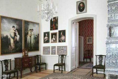 Introduction to the front hall: The antechamber of the Duchess`s apartments has many portraits of people, such as the Billund family.