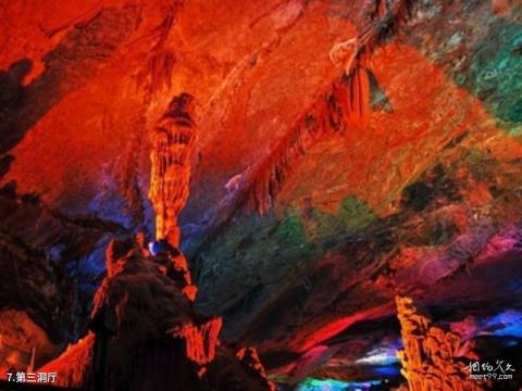 Introduction to the Third Cave Hall: The Third Cave Hall is the largest cave hall in Yaolin Wonderland, 170 meters long and 40 to 70 meters wide. After entering the cave hall, you are faced with a "jade pillar holding the sky" that is more than 30 meters high and 7 meters in diameter. There is a group of stalagmites more than 30 meters high on the right side. Under the illumination of colored lights, it looks like the Western Paradise, so it is called the "Thirty-Three Heavens".