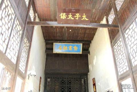 Introducción al salón del medio: En la parte trasera del salón del medio está el altar. En el santuario con los cinco dragones sosteniendo a los santos, hay una placa escrita por Zeng Jize Zhizhi de "El Dios de los Zeng". "Parientes pasados de la familia"; colgado en la parte superior está el noveno año de Tongzhi (en 1870 d.C.), el emperador le dio a Zeng Guofan la "Piedra Xun Gaozhu" con una placa horizontal dorada sobre fondo negro.