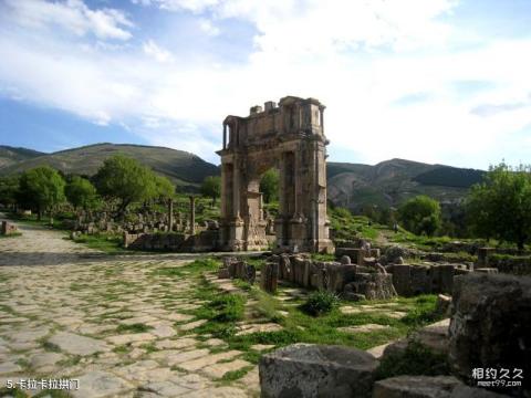 Introducción al Arco de Caracalla: Construido en el año 216 d.C., está hecho de mármol y sostenido por altos pilares de piedra. Aunque está moteado y despegado, todavía se puede imaginar el impulso de ese año.