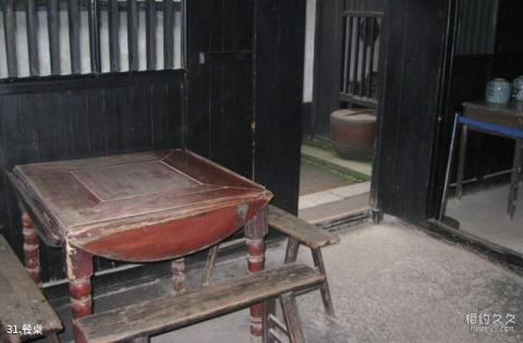 Introducción a la mesa del comedor: La cocina y la mesa del comedor de la antigua residencia están juntas. La sencilla mesa roja y el largo banco también evocan los recuerdos de muchas generaciones mayores de turistas.