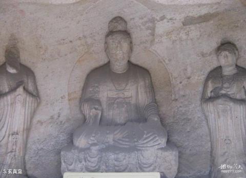 Introducción al nicho de Xuanzhen: El nicho de Xuanzhen fue excavado en la dinastía Tang y contiene tres estatuas. La gruta está orientada al sur, con base de altar y hornacina de arco apuntado en el muro principal. Hay tres estatuas en un pabellón en la cueva, una sentada y dos de pie. La estatua principal está pintada con un faro en forma de melocotón y luz de fondo. Una de las estatuas reales ha perdido la cabeza, mientras que la otra está. bien conservado.