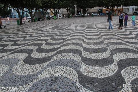 Introducción al suelo ondulado: El suelo de la Plaza San Sabasti es un terreno ondulado pavimentado con piedras blancas y negras, es muy dinámico y simboliza las aguas negras y los caballos del río Negro, afluente del río Amazonas. La confluencia de aguas blancas del río Lannion.