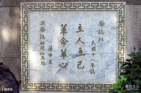 Introducción a la Sociedad Inspiradora: En la esquina sureste del edificio, hay una tablilla de piedra cuadrada con incrustaciones de las palabras "La Sociedad Inspiracional, el decimoctavo año de la República de China, estaba decidida a establecer personas y establecer Se animaron mutuamente para la revolución. Chiang Kai-shek y sus colegas de la Sociedad de Inspiración se animaron mutuamente." Fue entregado por Chiang Kai-shek Una inscripción autografiada de "Sociedad de Inspiración".