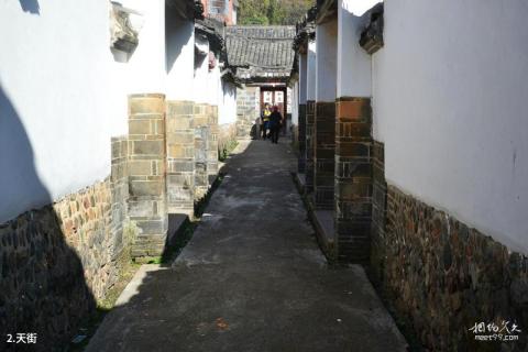 Introducción a Tianjie: Frente a la puerta del edificio hay un callejón de 2,3 metros de ancho y 27 metros de largo, que los residentes llaman "Tianjie". En la sección central de Tianjie, cuatro puertas de entrada se enfrentan al otro lado de la calle. Al entrar, hay cuatro grupos de pasillos con patios que forman el "campo" bajo el carácter "富".