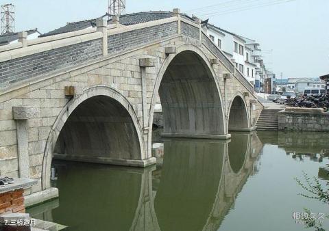 세 개의 다리 소개: 세 개의 다리는 연속적으로 건설되었으며, 각각 송, 명, 청 왕조의 서로 다른 특징을 보여줍니다. 이는 Qiandeng Water Village Bridge 문화의 정수이자 전형입니다. 3개의 다리 중 동쪽에 있는 작은 다리는 명나라 시대의 특징으로 강 이름이 Fangjingbang이라 명명되었습니다. 중앙에 Shangshu Pu를 가로지르는 3공 석조 아치교가 특징입니다. 청나라의 이름은 "행성교(興聖橋)"이며, 서안에는 "유도징교(Yu Du Jing Bridge)"라는 이름의 송나라 특유의 목조 다리가 있습니다.