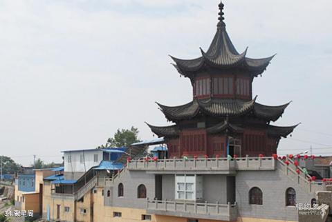 Juxing Pavilion 소개: Juxing Pavilion은 높이가 15미터이며 도시에서 가장 높은 건물입니다. 겹은 겹겹이 접혀져 있고, 각 겹은 날개와 각을 펼치고, 바닥에는 쇠말이 매달려 바람소리를 낸다. 1층은 40㎡ 규모로 진후대교를 오가는 보행자들이 1층 정자를 통과하며, 2층 중앙에는 관음상이 모셔져 있다. 3층에 올라가면 카운티 전체가 한눈에 보입니다.