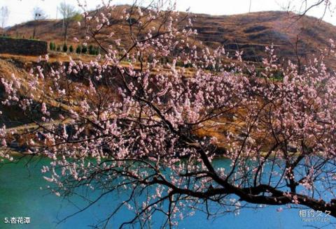 살구꽃 연못 소개: 이산문 왼편과 마을 하류 남쪽 강에서 봄이 되면 3월에 연못 주변에 살구꽃이 피어 그 빛을 반사합니다. 너무 아름다운 맑은 물 속에서. Attraction 잔황현 치판산 풍경명승구 여행 가이드