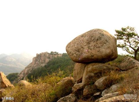 거위알 돌 소개: 호루안 전망대 남동쪽에 둥근 바위가 있는데 매끄럽고 거대한 거위알처럼 보입니다. 이 돌은 절벽 위에 서 있고 지형이 매우 가파르다. 고개를 숙이고 아래를 내려다보면 넘어질 것 같은 느낌이 들지만, 넘어질 정도로 오싹하다.