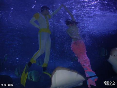 수중극장 소개: 수중극장의 창문은 길이 12m, 높이 3.5m로 두께 30cm의 첨단 아크릴 유리로 제작되어 견고성이 우수합니다. 2,880톤의 바닷물 압력을 견디는 해저 터널에서는 인어들이 바다 왕국을 오가는 모습을 감상할 수 있습니다.