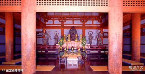 Introduction to the Medicine Master of the Golden Hall: In the center of the Golden Hall, there are three statues of the Medicine Master. The center is the Medicine Buddha, and the attendants on both sides are the Nikko Bodhisattva and the Moonlight Bodhisattva. It can be said that these three statues imitate the sickles carved from the sandalwood statues of the early Heian period. A masterpiece among the early vintage works of the warehouse.
