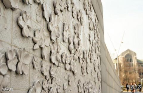 Introduction to the Pear Blossom Wall: The side of the main entrance of Ewha Womans University is covered with pear blossoms, forming a beautiful pear blossom wall, which is the symbol of Ewha University.