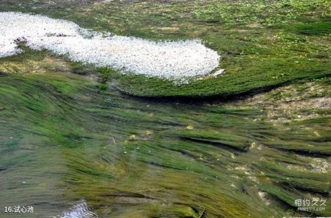 Introduction to the Testing Pool: There are two pools eroded by water on the huge bluestone beside Fenglong Trough. The two pools are 1 meter apart. The big one is shaped like a red peach, and the water depth is about 1 meter. The small one is 1 meter apart. It is shaped like a flat peach and the water is about 4 meters deep. These are the Big Test Heart Pond and the Small Test Heart Pond. The water in the pool is formed by the impact of the upstream water. It does not overflow in rainy days and does not dry up in dry days. It is clear and blue to the bottom. It is said that these two ponds are particularly spiritual. Whether they are lovers or close friends, they will reveal their true feelings under the reflection of the pure and clear water.