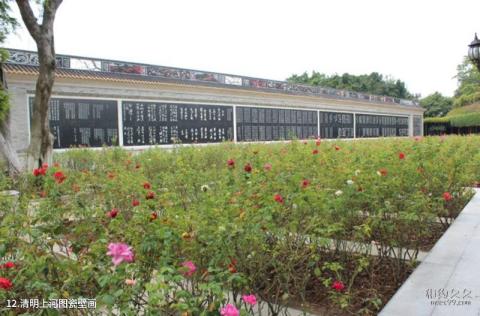 Introduction to the porcelain mural "Along the River During the Qingming Festival": Baomo Garden's large-scale painted relief porcelain mural "Along the River During the Qingming Festival" is enlarged a hundred times from the original, with an additional preface, postscript and trim. It is 62.8 meters long, 7.3 meters high, and consists of 1,352 pieces. The relief porcelain plates are assembled together, combining ceramic sculptures and ceramic paintings. The entire relief porcelain painting is majestic, lifelike, and has exquisite carving skills. It is listed in the "Guinness World's Best" and can be said to be the treasure of Baomo Garden. The treasure of the town garden.