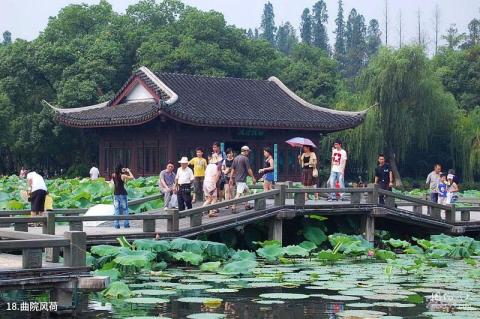 Introduction to Quyuan Fenghe: Quyuan Fenghe, with the theme of viewing lotus in summer, is ranked second among the ten scenic spots in the West Lake following the spring dawn on the Su Causeway. "Quyuan" is located near Hongchun Bridge on Lingyin Road today, close to the shore of the then West Lake. Lotus flowers are cultivated on the lake near the shore. Every summer, when the gentle breeze comes, the fragrance of lotus and wine float everywhere, making people drunk even if they don't drink.