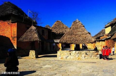 Introduction to Qingkou Hani Folk Village: Qingkou Hani Folk Village is 8 kilometers away from the old county seat (Xinjie Town) and is located in the Yuanyang Rice Terraces National Wetland Park and the core area declared to be a world cultural heritage. It maintains a complete ecosystem with the four isomorphic elements of "forest, water system, mountain village, and terraced fields". The Hani people's folk customs, distinctive national cultural characteristics, unique production and lifestyle, terraced fields, sea of clouds, and ancient "mushroom houses" are integrated. It is a model of rational utilization of natural resources for agricultural development.