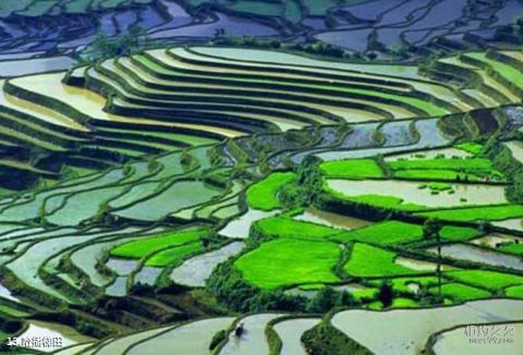 Introduction to Habo Terraces: Habo Terraces surround Habo Village in a circle. Standing at the east end of the village and looking far away, you can see hundreds of crescent-shaped terraces climbing up from the river valley on dozens of semicircular mountain ridges with a slope of 45 degrees in the east. The red sun is shining, and the terraces on dozens of mountain ridges are visible. It is red, black and red are distinct, and it is extremely spectacular. Habo Terraces have the steepest slope and the strongest three-dimensional effect among the Yuanyang terraces, and are the best place to watch the sunrise over the terraces.