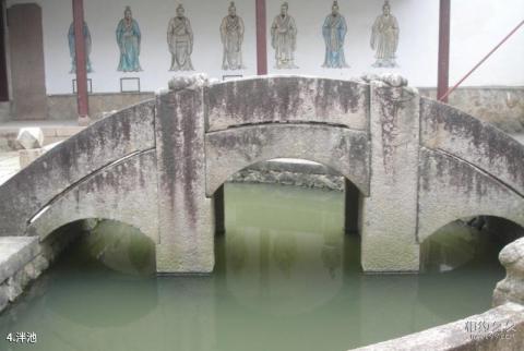 Panchi introduction: Passing through the Lingxing Gate, there is a 15-square-meter semicircular Panchi in the middle of the patio, commonly known as "Lotus Leaf Pond" or "Mochi". There is a three-hole stone arch bridge across the pool, 4.3 meters long, commonly known as "Buyun Bridge", which means rising to the top step by step, rising to the blue clouds. This was also a symbol of the glory of scholars at that time, because only scholars who had obtained the title of Juren or above could cross the Pan Bridge proudly. It was a veritable "Famous Bridge". There are portraits of eighteen Confucius disciples painted on the walls of the rain corridor on both sides of Panchi.