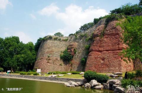 Introduction to "Ghost Face Looking in the Mirror": In the section of the city wall on the north side of Qingliang Gate, there is a huge uneven stone in the natural rock wall. Because it resembles a ferocious ghost face, and because there is a brick wall around the "ghost face", it is commonly known as "Ghostface City". There is a pond in front of the stone wall, where you can see the reflection of ghost faces. It is called Mirror Pond. The famous scenic spot "Ghost Faces Looking in the Mirror" refers to this place in history.