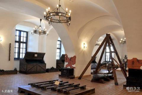 Introduction to the Arsenal: In the room (Nesvizh Castle Arsenal) where old weapons are displayed, a sense of history emerges. Whether they are iron or wooden, you can see that they have been weathered.