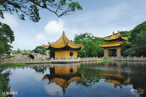 Introduction to Lotus Pond Night Moon: "Lotus Pond Night Moon" refers to the moonlit night scenery of Haiyin Pond. Haiyindi is located in front of the gate of Puji Temple. It is also called "Release Pond" or "Lotus Pond". It was originally a pond where Buddhist believers released animals. Later, lotus flowers were planted there, so it is called "Lotus Pond".
