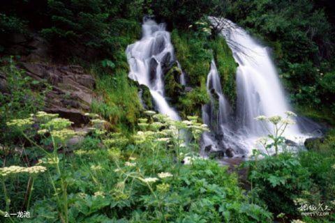 Introduction to Yilong Pond: It is located under the stone cliff at the foot of the mountain. The stream overflows down the cliff and forms a pool with an area of more than ten feet. The water in the pool is yellow-green in the shallows and dark green in the depths. It is said to be the place where the Dragon King bathes. Villagers also It's called the Dragon King Bathtub.