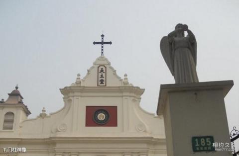 Introduction to door pillar statues: There are statues of gods standing on the stone pillars on both sides of the church door.