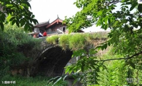 Introduction to Yanliu Pingqiao: In the beginning of spring, the willows beside Qinglong Bridge grow new buds, like smoke and gauze, as if green waves are about to surge onto the bridge. This is another scene among the eight sceneries of Shuhe River. : "Smoke Willow Pingqiao".