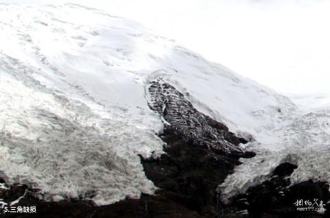 Introduction to the triangular defect: The Karola Glacier is well-known for its appearance in the movies "Red River Valley", "Battle of Gyantse", and "Yunshui Yao". In 1996, in order to shoot the avalanche scene, the crew of the movie "Red River Valley" A large piece of the glacier was blown away, and the clearly visible triangular defect on the Karola Glacier today is the trace left behind at that time.