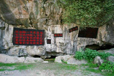 Introduction to cliff carvings: There are more than 40 kinds of cliff carvings at each cave entrance, the most famous of which is the "Diamond Sutra" verses of more than 40 words written by Wuzhong, the state pastor in the third year of Kaixi of the Song Dynasty (1207), written in seal script with official calligraphy Break away from the customs and become a family of its own.