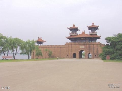 Introduction to Chu City: Chu City is the entrance to the Chu Culture Tourist Area in Moshan, East Lake. The city gate is 23.4 meters high and 11 meters wide. It consists of water gate, land gate, city wall, watchtower, arrow tower and beacon tower, with a total length of 117 meters. , simple design and magnificent. Chu customs are still red, and the city walls are made of red sandstone from Daye, Hubei. The inscription "Chu City" is in oracle bone inscriptions, inscribed by Mr. Hu Houxuan, a modern business historian and oracle bone writer. The plaque "Jingchu Xiongfeng" is handwritten by the famous calligrapher Li Duo.