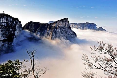 Introduction to Yihong Pass: Yihong Pass is located on the west line of Tianmen Mountain. Looking across from Yihong Pass, there are three rolling peaks: Chisong Peak on the far left, because Chisongzi, the rainmaster of Emperor Shennong, was here. It got its name from the practice of seclusion; a nearby peak resembles the hat worn by a monk, so it is called "Monk's Brain"; in the middle is a huge stone cliff, which splits a bottomless canyon. Above the canyon, There is a natural stone strip that connects the two ends like a rainbow, so it is named "Duanshan Hongqiao", and "Yihongguan" is also named after this.