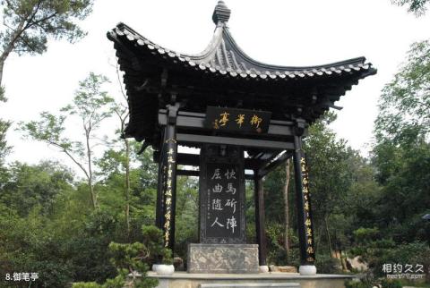 Introduction to Yubi Pavilion: This is the postscript written by Emperor Qianlong of the Qing Dynasty for Mi Fu's "Senior Tie" (also known as "Ti Xing Dian Yuan Tie"). There are eight words in total: "The fast horse cuts the formation, bends and follows the people. ". It is said that the word "rice" is like a fast horse running through the battlefield, advancing and retreating in twists and turns with ease, which is used to flaunt Mi Fu's profound attainments in calligraphy that are unparalleled and free from the world.
