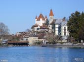 图恩湖(Thunersee)位于瑞士因特拉肯东部,因冰河融化后的水汇集而成,湖岸除了阿尔卑斯的美丽山景,还有木屋为特色的瑞士传统农庄,以及零星点缀着图恩城堡、施皮茨城堡、奥伯霍芬城堡(Schloss Oberhofen)等古代城堡,自古以来就是阿尔卑斯地区著名的夏季度假胜地。景区特色: