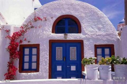 建筑介绍:伊亚的建筑最让游人感兴趣的是石洞屋,这种称为“鸟巢”的房屋有着白色的门墙屋顶,蓝彩窗棂上大多摆放着几盆红花,表现出基克泽斯群岛独特的建筑风格。小镇朴实而美丽的氛围吸引了许多艺术工作者定居于此,镇中的纪念品商店﹑艺廊﹑银饰精品店都表现出不俗的格调,有着“艺术家的村落”的美誉。