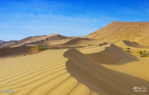 鸣沙山介绍:因沙漠风力较大,受其影响,巴丹吉林沙漠的沙丘造型多变,呈现着万千景观。其中宝日陶勒盖鸣沙山高达200多米,其峰峦陡峭,沙脊如刃,每当狂风吹起,沙子便会随坡下滑,轰鸣声响彻百里,有着“世界鸣沙王国”的美誉。