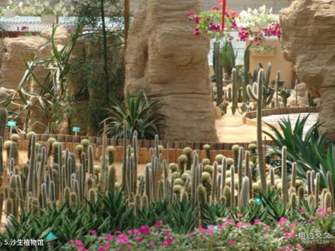 沙生植物馆介绍:沙生植物馆中共展示了仙人掌科、龙舌兰科、百合科、景天科等100多种植物,这些植物的共同特点就是都非常耐旱。为了更好体现大漠的文化,沙生温室中还建有墨西哥金字塔、沙雕和玛雅人文化遗产,通过各种建筑物的配合使游人们可以体验在大漠之中行走的感觉,并且体会这些植物坚强不屈的性格。