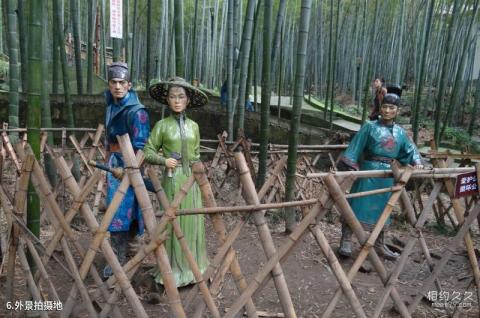 外景拍摄地介绍:2003年张艺谋在拍摄电影《十面埋伏》时,经过多方考察,来到永川茶山竹海,发现扇子湾竹海竹林密集,竹子竹型挺拔,非常适合剧中情景的需要,因而在此选址拍摄。此部电影的演员阵容强大,国际明星章子怡、刘德华、金城武和宋丹丹等都参与此部影片。
