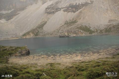 五色海介绍:五色海由于光的折射下,产生五种不同颜色而得名。其真名为“单增措”。它位于仙乃日与央迈勇之间,海拔4600米,湖面呈圆形,面积0.7公顷,现代冰谷下伸至湖畔,雪山倒影湖面,是藏区著名的圣湖。 Attraction 四川稻城亚丁旅游攻略
