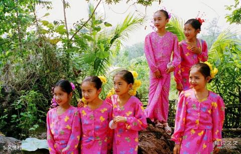 风情村介绍:风情村坐落在周恩来总理纪念亭东侧的大片凤尾竹林间,竹林密而挺拔,阳光透照在林间小屋和鹅卵石铺就的曲径上,如点点碎银闪闪烁烁,悠扬的民族舞曲伴随着姑娘小伙们的翩翩舞姿,让您品不尽潞西少数民族的万种风情。