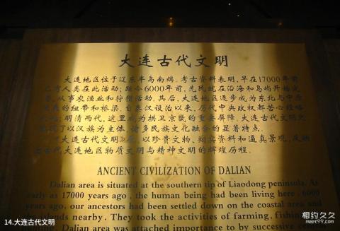 大连古代文明介绍:“大连古代文明展”位于分管一层,为分馆常设的主要展览之一。展览分石器时代、青铜至魏晋时期、隋唐至清明时期三个展厅,通过大量大连地区出土的历史文物,结合辅助手段,反映了大连自古以来的历史发展状况。