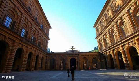 皮蒂宫介绍:皮蒂宫与阿诺河对岸的乌费兹美术馆通过瓦萨里亚诺(vasariano)长廊相连,宫殿由佛罗伦萨商人皮蒂于1457年开始建造,因此得名。1465年,皮蒂宫被科西莫・美第奇买下,成为美第奇家族的宫殿,交由布鲁涅内斯基重新设计,1764-1783年间又添加了两侧辅楼,最终成为现在看到的样子,是佛罗伦萨文艺复兴时代的典型建筑。
