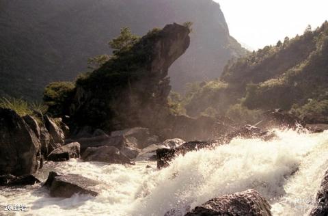蛙岩介绍:蛙岩是一个古滑坡崩塌形成,该景有叠石、瀑布、岩洞、水道、石笋等景观,溪流中有一状似蛙的岩石,昂首急流中,蓄势欲跳,故称其为蛙岩。